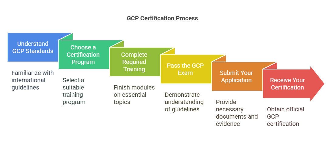 Obtaining GCP certification involves a series of steps that ensure you have the necessary knowledge and skills to work in clinical trials. Here’s a breakdown of the process:
