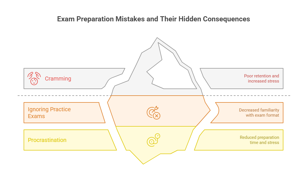 Increased Stress: Attempting to study large amounts of material in a short time increases stress levels, which negatively impacts performance on the exam.