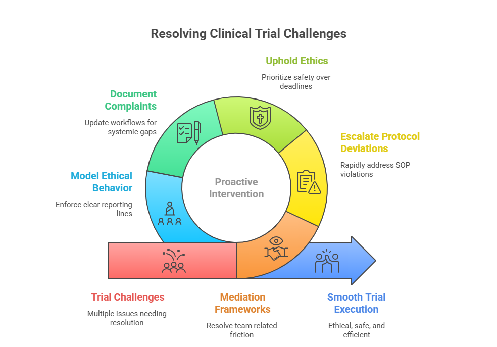 Leadership in clinical research isn’t just about performance—it’s about navigating ethical gray zones and interpersonal dynamics with precision. Principal Investigators must act swiftly when conflicts arise, whether between staff, with participants, or across sponsor-site boundaries. The best PIs embed systems for both proactive conflict prevention and reactive resolution, ensuring integrity doesn’t erode under pressure.